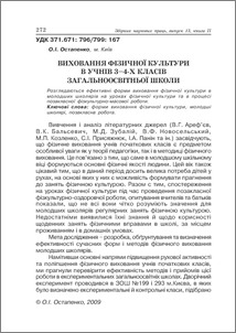 - Остапенко, О.І. (2009) Виховання фізичної культури в учнів 3–4-х класів загальноосвітньої школи Теоретико-методичні проблеми виховання дітей та учнівської молоді, 2 (13). pp. 272-280. ISSN ISBN 978-966-2124-50-7