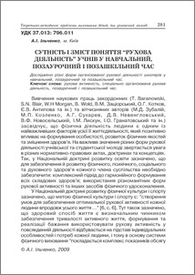 - Ільченко, А.І. (2009) Сутність і зміст поняття “рухова діяльність” учнів у навчальний, позаурочний і позашкільний час Теоретико-методичні проблеми виховання дітей та учнівської молоді, 2 (13). pp. 281-288. ISSN ISBN 978-966-2124-50-7