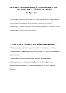 Концепция устойчивого развития – это самая гуманная идея современного человеческого сообщества. Она предлагает такие пути развития цивилизации, которые обеспечат достаточные условия для успешной жизни нынешним и последующим поколениям.