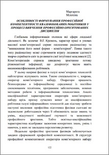 Висвітлено особливості формування професійної компетентності кваліфікованих робітників у процесі вивчення професійно-орієнтованих дисциплін на прикладі операторів комп'ютерного набору