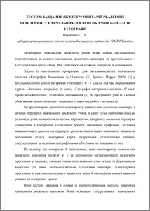 The theses presented tests as toolkit of monitoring implementation of pupils’ educational achievements of 6-7 grades in geography