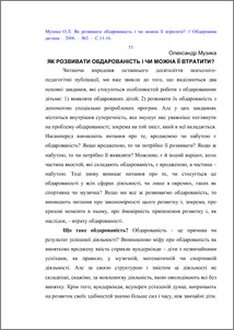 - Музика, О. Л. (2006) Як розвивати обдарованість і чи можна її втратити? / Обдарована дитина. , 3. pp. 11-16.