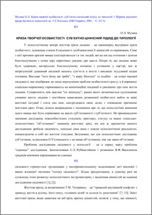 - Музика, О. Л. (2001) Криза творчої особистості: суб’єктно-ціннісний підхід до типології // Збірник наукових праць Інституту психології ім. Г.С. Костюка АПН України.. pp. 63-72.