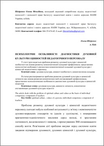 | Keywords: | spiritual culture , values of a person, individual competence component of teachers |