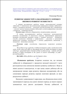 - Музика, О. Л. (2007) Розвиток здібностей та обдарованості в процесі вікового розвитку особистості Актуальні проблеми психології: Проблеми психології творчості та обдарованості. Збірник наукових праць Інституту психології ім. Г.С. Костюка АПН України, 2 (12). pp. 142-148.