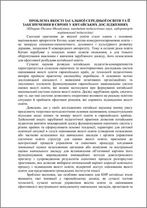 - Шпарик, Оксана Михайлівна (orcid.org/0000-0001-7507-4950) (2014) The problem of quality assurance of secondary education in Europe in Chinese studies In: Анотовані результати НДР Інституту педагогіки за 2013 рік , 1 . Інститут педагогіки , м. Київ, Україна, pp. 48-49.