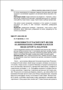 - Хромова, О.Л. (2010) Особливості сучасної сім'ї: вплив на виникнення і прояви насилля щодо дітей та підлітків Теоретико-методичні проблеми виховання дітей та учнівської молоді, 1 (14). pp. 554-563. ISSN ISBN 978-966-189-055-7