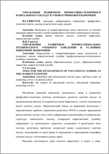 - Свистун, Валентина Іванівна (2014) Management of the development of vocational and technical educational institution in conditions of market economy Професійно-технічна освіта, 1 (62). pp. 16-18.