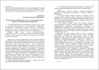 Keywords: зміст освіти, фундаменталізація, компетентнісний підхід, компетенція і компетентнісність, провідний компонент змісту навчального предмета, блочно-модульна побудова навчального предмета.