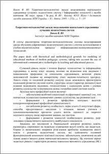 - Биков, В.Ю. (2006) Theoretical and methodological basis of modeling learning environment of modern educational systems Інформаційні технології і засоби навчання: Збірник наукових праць (1). pp. 5-15. ISSN ISBN 966-326-170-6