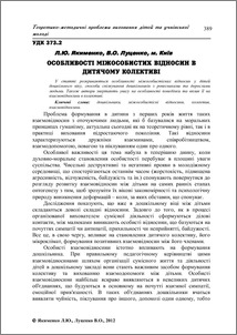 - Якименко, Л.Ю. and Луценко, В.О. (2012) Особливості міжособистих відносин в дитячому колективі Теоретико-методичні проблеми виховання дітей та учнівської молоді, 1 (16). pp. 389-396. ISSN ISBN: 978-966-7406-72-1