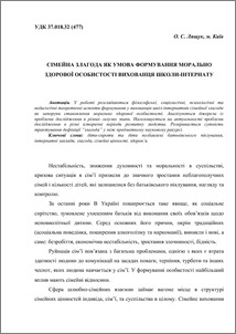 - Лящук, О.С. (2013) Cімейна злагода як умова формування морально здорової особистості вихованця школи-інтернату Теоретико-методичні проблеми виховання дітей та учнівської молоді, 1 (17). pp. 428-436. ISSN ISBN: 978-966-189-209-4