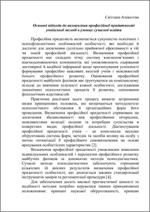 - Алєксєєва, С.В. (2013) The main approaches to determination of professional suitability in the conditions of modern education In: Науково-методичне забезпечення професійної освіти і навчання: матеріали Звітної науково-практичної конференції (м. Київ, 28 березня 2013 р.) , 1 . ІПТО НАПН України, м. Київ, Україна, pp. 151-153.