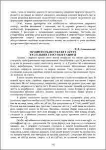 Висвітлено про особистість як суб’єкт і об’єкт суспільних стосунків у спорті, оскільки людина з перших кроків свого життя потрапляє під вплив суспільних стосунків, трансформованих через виховання.