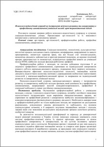 - Злочевська, Л.С. (2013) Psychoeducational support as an instrument of integral development and self-development in professional self-determination of students’ youth: art- therapeutic approach. Журнал «Професійно-технічна освіта» , 1 (54). pp. 46-50.