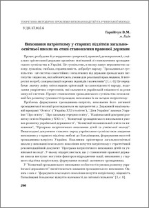 В статті розглянуто і проаналізовано теоретичні підходи до патріотичного виховання старших підлітків загальноосвітньої школи. Розкрито вікові особливості старших підлітків, які впливають на формування у них патріотизму.