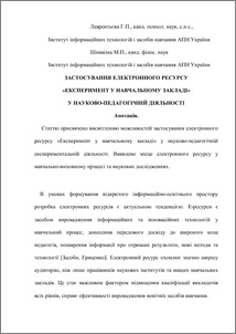 - Лаврентьєва, Г.П. and Шишкіна, М.П. (2008) Application of an electronic resource "experiment in school" in scientific and educational research Нові технології навчанн (57). pp. 3-7.