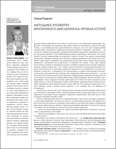 - Пометун, Олена Іванівна (2012) Methods of critical thinking on the lessons of history (p. 1) Історія і суспільствознавство в школах України: теорія та методика навчання, 1. pp. 3-7.