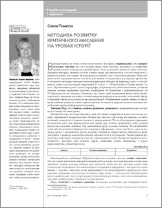 - Пометун, Олена Іванівна (2012) Methods of critical thinking on the lessons of history (p. 1) Історія і суспільствознавство в школах України: теорія та методика навчання, 2. pp. 3-7.