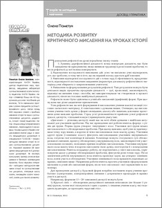 - Пометун, Олена Іванівна (2012) Methods of development of critical thinking on the lessons of history Історія і суспільствознавство в школах України: теорія та методика навчання (4). pp. 9-13.