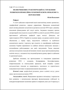 - The impact of market transformation in upravilnnya development of vocational education: problems and prospects (deposited 24 Apr 2014 10:56) [Currently Displayed]