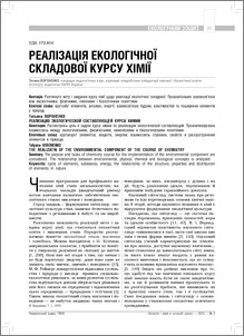 - Вороненко, Т. І. (2013) The realizatin of the environmental Component of the Course of Chemistry Біологія і хімія в сучасній школі, 2 (96).