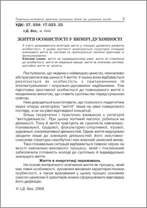 - Бех, І.Д. (2009) Життя особистості у вимірі духовності Теоретико-методичні проблеми виховання дітей та учнівської молоді, 1 (13). pp. 3-16. ISSN ISBN 978-966-2124-49-1
