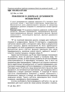 - Бех, І.Д. (2011) Рефлексія в дзеркалі духовності особистості Теоретико-методичні проблеми виховання дітей та учнівської молоді, 1 (15). pp. 3-15. ISSN ISBN 978-617-620-015-4