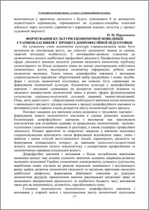У статті висвітлюються аспекти формування культури економічної поведінки старшокласників у процесі допрофесійної підготовки.