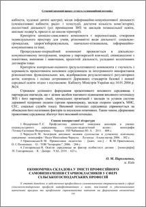 - Пархоменко, О.М. (2013) Економічна складова у змісті професійного самовизначення старшокласників у сфері сільськогосподарських професій In: Сучасний виховний процес: сутність та інноваційний потенціал (3). НАІР, м.Івано-Франківськ, Україна, pp. 166-169.