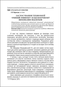 Обґрунтовано особливості педагогічної технології „рівний-рівному” в екологічному вихованні учнів основної школи як такої, що базується на використанні знань, досвіду і авторитету однолітків для інформування та формування екологічно доцільної поведінки.