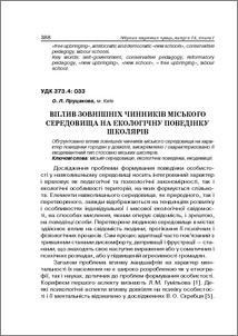 Influence of external factors of urban environment is grounded on the environment conduct of townspeople, selected and described it ekodeviant type in relation to city schoolchildren.
