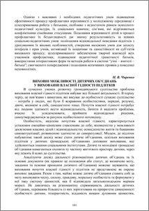 - Чиренко, Наталія Вікторівна (2011) Виховні можливості дитячих об’єднань у вихованні власної гідності підлітків In: Сучасний виховний процес: сутність та інноваційний потенціал , 1 (1). Видавництво «Тіповіт», м. Івано-Франківськ, pp. 181-182.