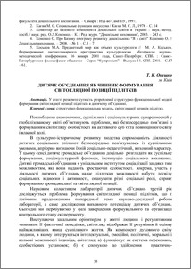 У статті розкрито сутність розробленої структурно-функціональної моделі формування світоглядної позиції підлітків в дитячому об’єднанні.