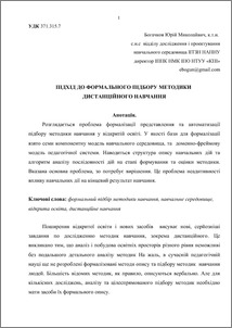 | Keywords: | formal selection of teaching methods, learning environment, open education, distance learning. |