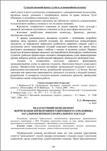 - Федорченко, Т. Є. (2013) Педагогічний менеджмент формування превентивного виховного середовища загальноосвітнього навчального закладу In: Сучасний виховний процес: сутність та інноваційний потенціал: матеріали звіт. наук.-практ. конф. (3). НАІР, м. Івано-Франківськ, Україна, pp. 285-288.