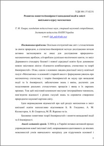 - Хмара, Тамара Миколаївна (2012) Розвиток поняття ймовірності випадкової події в змісті шкільного курсу математики Проблеми сучасного підручника (12). pp. 742-746.