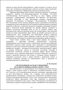 Розглядається проблема спілкування з членами сім’ї, яке спрямоване на покращення взаєморозуміння у відносинах між батьками та дітьми. Окреслено функції, які спілкування виконує у батьківсько-дитячих взаєминах.