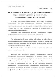 The article describes the initial positions and results of the study culture of innovation teaching staff. Presented an experimental technique of self-appraisal culture of innovation of teacher to study the ability of the personality in innovation educational work and vocational guidance .
