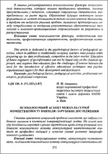 | Keywords: | international education, intercultural competence, particularities of the psychological aspect of intercultural competence |