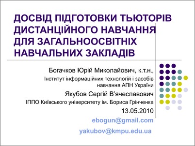 Досвід підготовки тьюторів дистанційного навчання для загальноосвітніх навчальних закладів