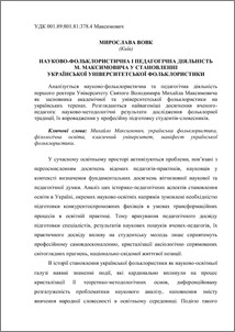 - Вовк, М.П. (2013) Activity of the scientific specialist in folklore and pedagogical of M. Maksymovich is in becoming Ukrainian university specialist in folklore Імідж сучасного педагога, 10 (139). pp. 43-46. ISSN 2221-6316