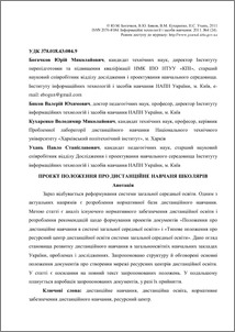 - Богачков, Ю.М., Биков, В.Ю., Кухаренко, В.М. (orcid.org/0000-0003-0227-5836) and Ухань, П.С. (2011) Project of statute of distance education in secondary schools Інформаційні технології і засоби навчання, 4 (23). ISSN 2076-8184