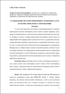 - Лукіна, Т.О. (2012) Formation of a monitoring system the education sphere in Ukraine: Problems and Prospects Вересень (4). pp. 13-23. ISSN 978-966-644-I15-0