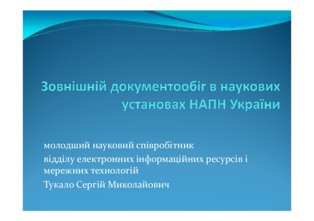 Presentation to the scientific report "External circulation in scientific institutions of the National academy of pedagogical sciences of Ukraine".