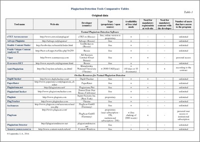 - Лупаренко, Л. А. (orcid.org/0000-0002-4500-3155) (2014) Plagiarism Detection Tools Comparative Tables [Dataset] (In Press)
