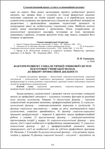 У статті розглянуто фактори ідеологічний, соціально-економічний, соціальної залученості незалученості, соціального прагматизму, соціально-моральних принципів профорієнтації як основа розвитку соціалістичної і ринкової систем підготовки учнівської молоді до професійного самовизначення.