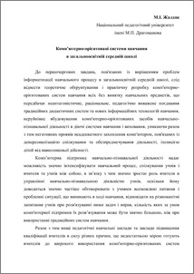 - Жалдак, М.І. (2008) Computer-based systems of training in secondary school Інформатика та інформаційні технології в навчальних закладах, 5 (17). pp. 4-9.