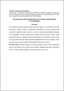 Лукіна, Т.О. (2010) Technology of quality education management of civil servants . Луцьк, Луцьк.