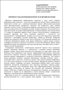 - Філіпчук, Г.Г. (2005) Пріоритет екоантропоцентризму в освітній політиці Українознавство, 1. pp. 111-115.
